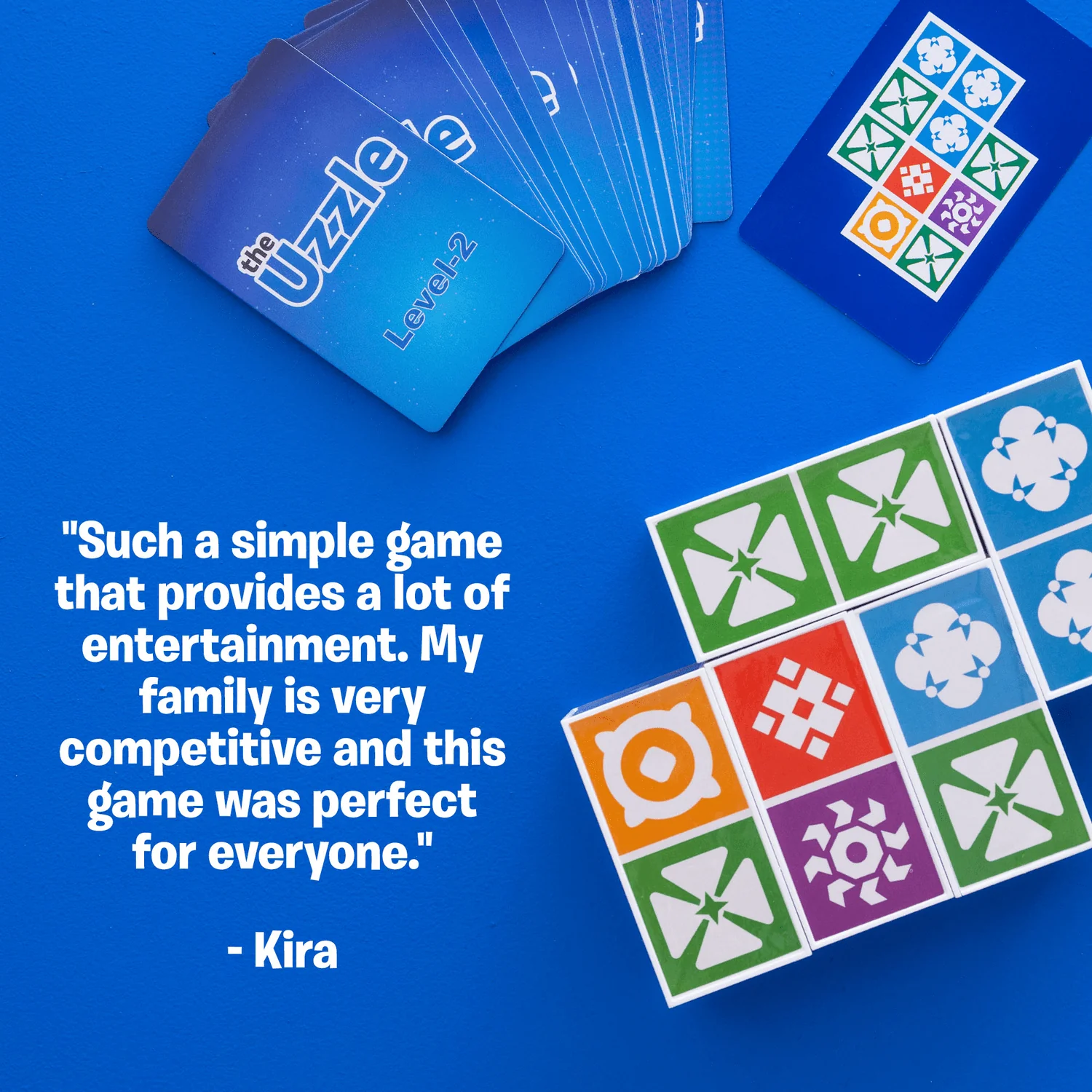"Love my UZZLE game because all ages can play it! It's great to have different levels of difficulty for those players of varying competitiveness. This game is so much fun! :)"